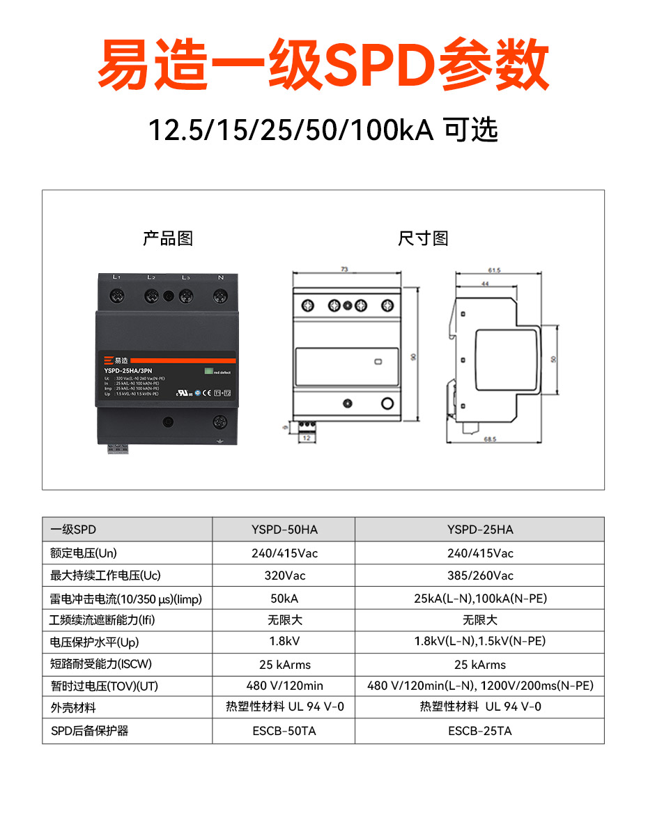 易造T1級(jí)浪涌保護(hù)器12.5kA-100kA規(guī)格型號(hào)齊全,嚴(yán)格執(zhí)行國(guó)內(nèi)國(guó)際各項(xiàng)標(biāo)準(zhǔn),獲得了UL、CSA、TUV、CE、CQC等多項(xiàng)權(quán)威認(rèn)證,確保了易造SPD在各種環(huán)境下的適用性和可靠性,可廣泛應(yīng)用于軌道交通、石油化工、港口碼頭、風(fēng)力發(fā)電、儲(chǔ)能系統(tǒng)、冶金、機(jī)場(chǎng)、醫(yī)院、煙草、市政等行業(yè)領(lǐng)域。