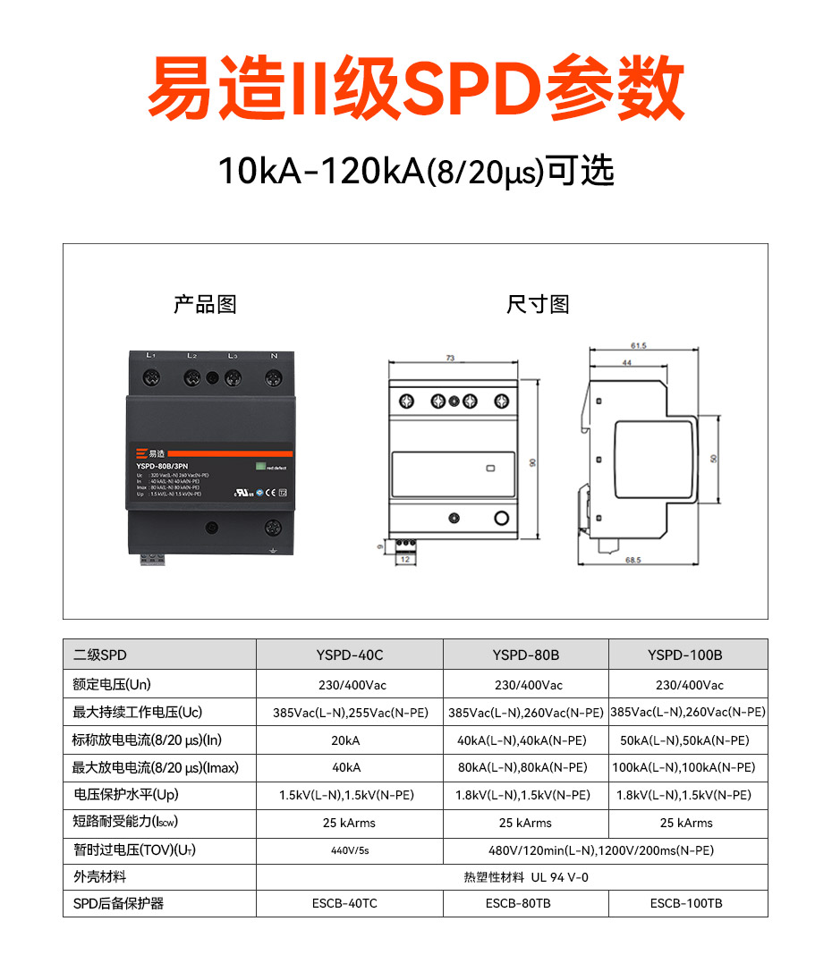 - 放電電流:20/40/80/100/120kA