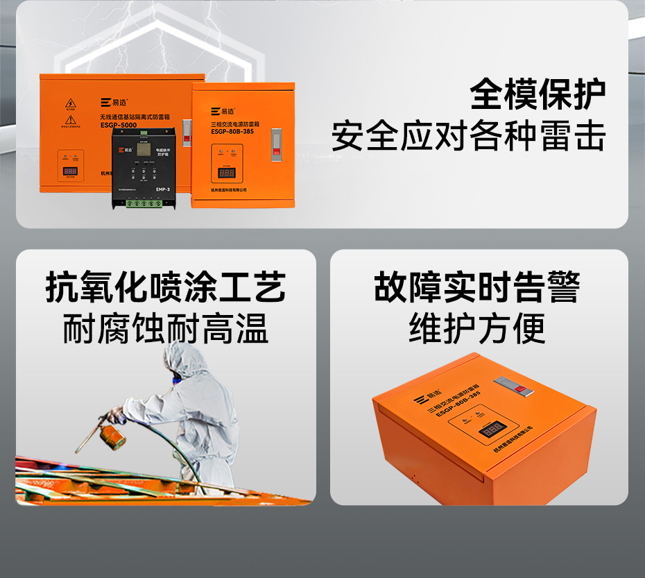 易造隔離式防雷箱、電磁脈沖防護箱、電源防雷箱、智能防雷箱被廣泛應用于通訊基站、數據機房、醫療設備、石油化工、鐵路系統、儲能電站等場景,易造防雷箱采用全模保護,可高效抵御直擊雷(10/350μs)、感應雷(8/20μs)及電磁脈沖輻射。