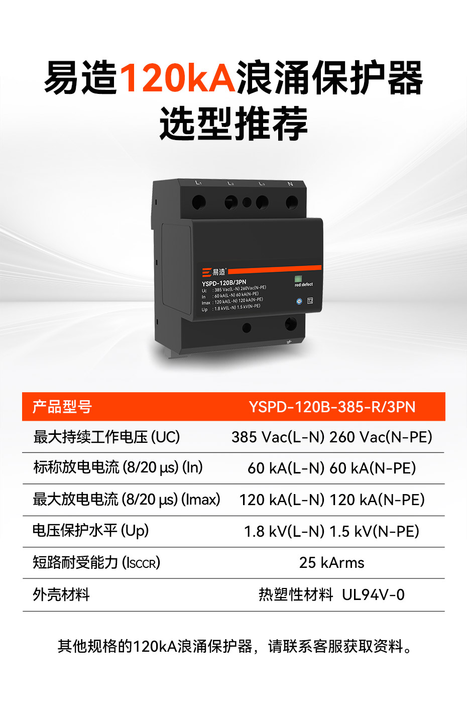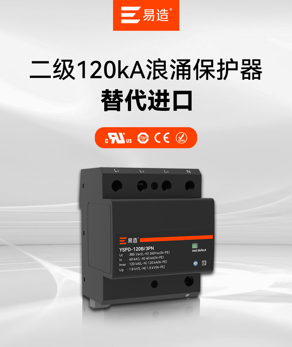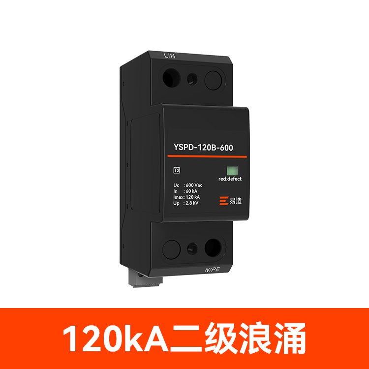 易造120kA二級浪涌保護器,小體積大通流適用于各種供配電系統的單相和三相保護帶本地和遠程告警功能,安裝簡單、維護方便可用于3000米以上的高海拔地區。
