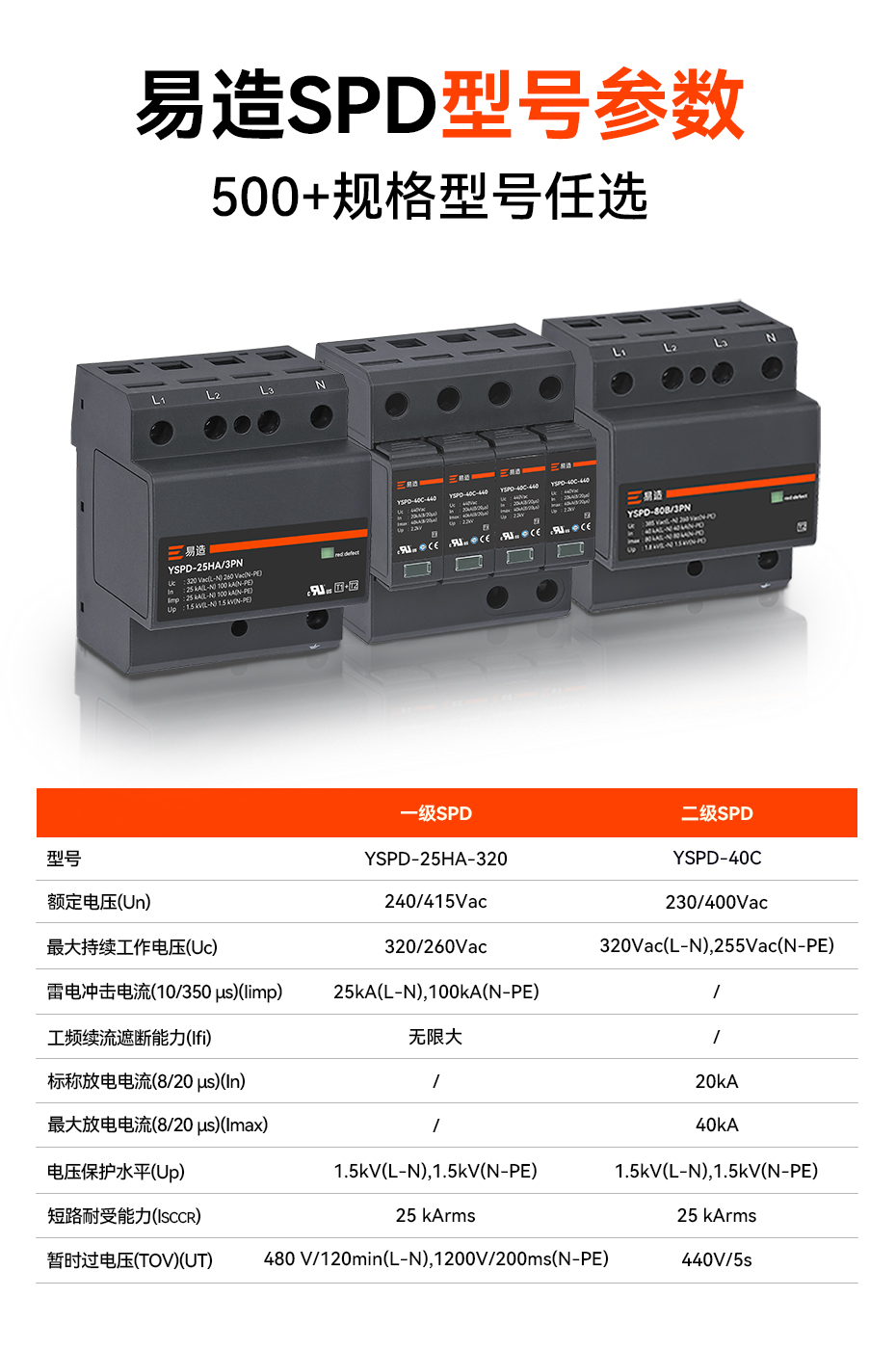 易造YSPD系列一級、二級、三級電源防雷器將安全和創新出色地融合在一起,采用突破性MG復合型技術,解決了傳統SPD的短板缺陷,無續流無漏電流,延長了SPD使用壽命并提高了供電效率;易造SPD小型化設計,每相寬度僅一個模數(18mm),使配電箱的空間更充裕,并具有本地及遠程告警功能,維護方便;靈活的鏈式放電技術簡化了SPD的安裝方式,上下級SPD能量自動配合,無需退耦器,顯著提升了電涌保護效率和TOV耐受能力,確保供電系統的穩定性。